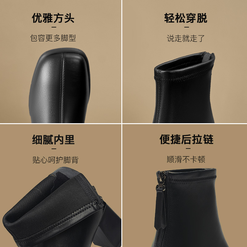 法式 熱風(fēng)高跟時(shí)裝 靴2025年冬季 新款 方頭粗跟短靴通勤休閑靴子女鞋