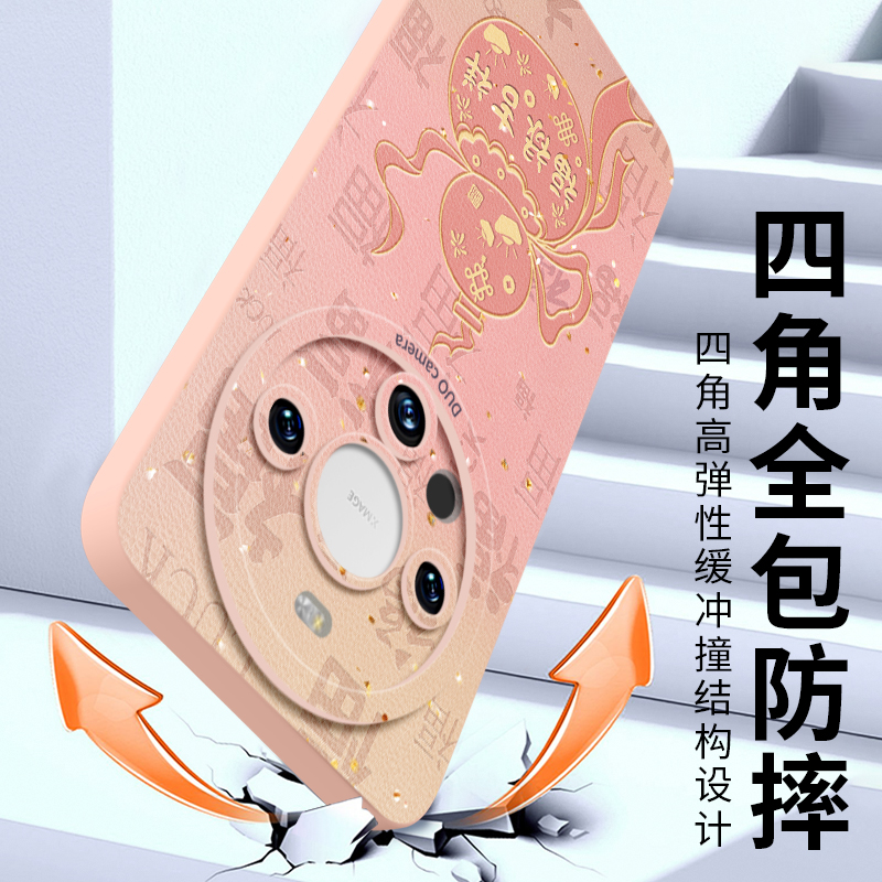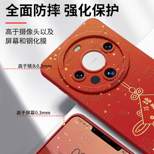 40外殼pro 后e女por高級感pr0液態硅膠mt軟紅色防摔鎏金福氣 適用華為mate70手機殼mate60pro保護套30新款由