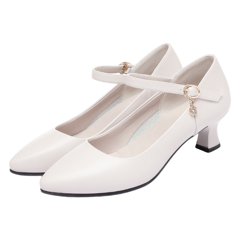 千百度裸色細高跟鞋 淺口氣質通勤單鞋 女真皮不累腳 靜音系列