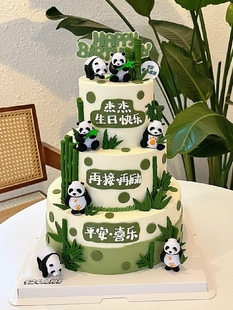 國潮風男孩女孩周歲生日裝 扮插件插牌 飾擺件新中式 熊貓竹子蛋糕裝由
