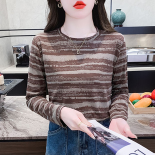女士條紋長袖 秋冬內搭2025新款 洋氣百搭秋季 上衣女 t恤圓領打底衫由