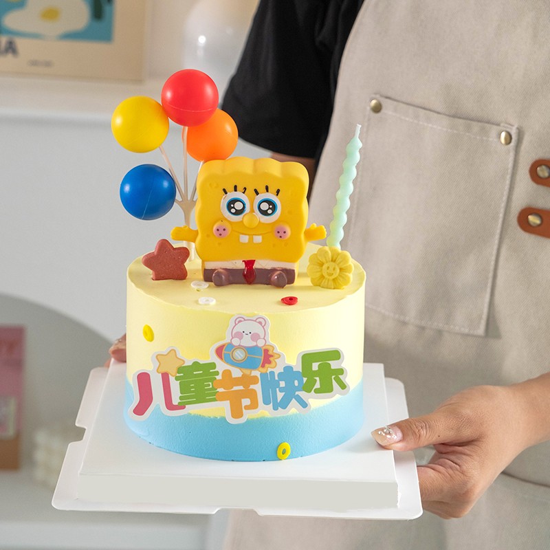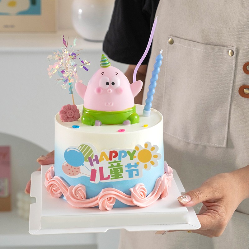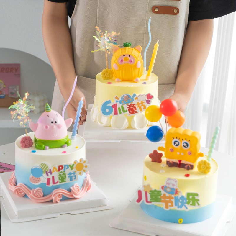飾卡通海綿寶寶派大星擺件小朋友61節日快樂插牌 六一兒童節蛋糕裝由