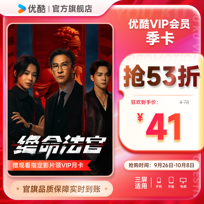 優酷VIP會員3個月優酷會員季 卡三個月 守護者們 下單享53折由