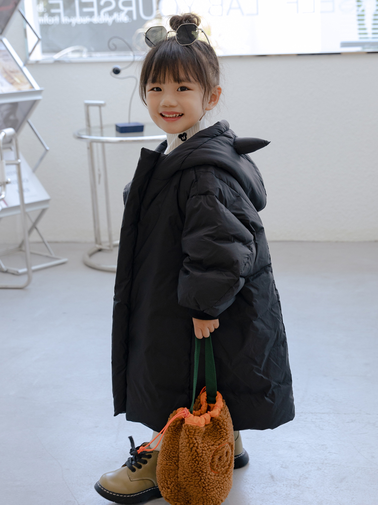過膝保暖秋冬寬松外套韓版 兒童羽絨服牛角小惡魔男童女童長款 冬裝由