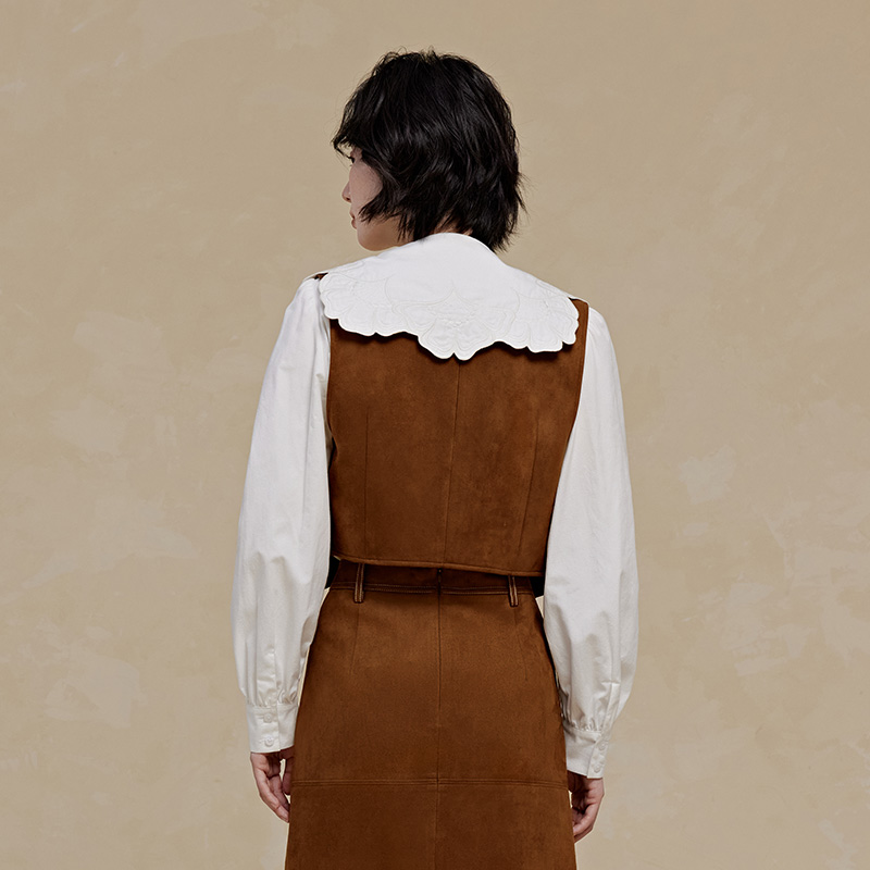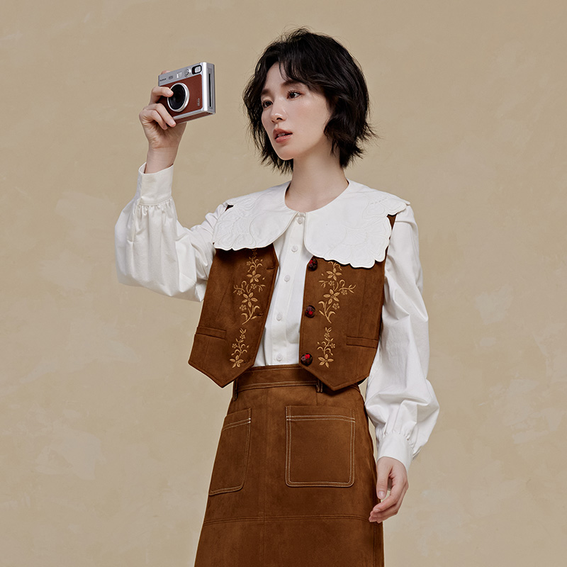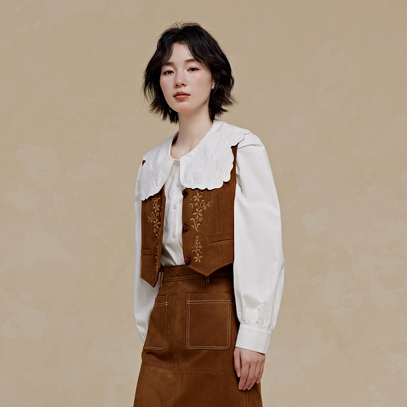 PIT復古刺繡百搭馬甲女駝色顯瘦上衣2025秋季 馬夾宮廷風 新款由