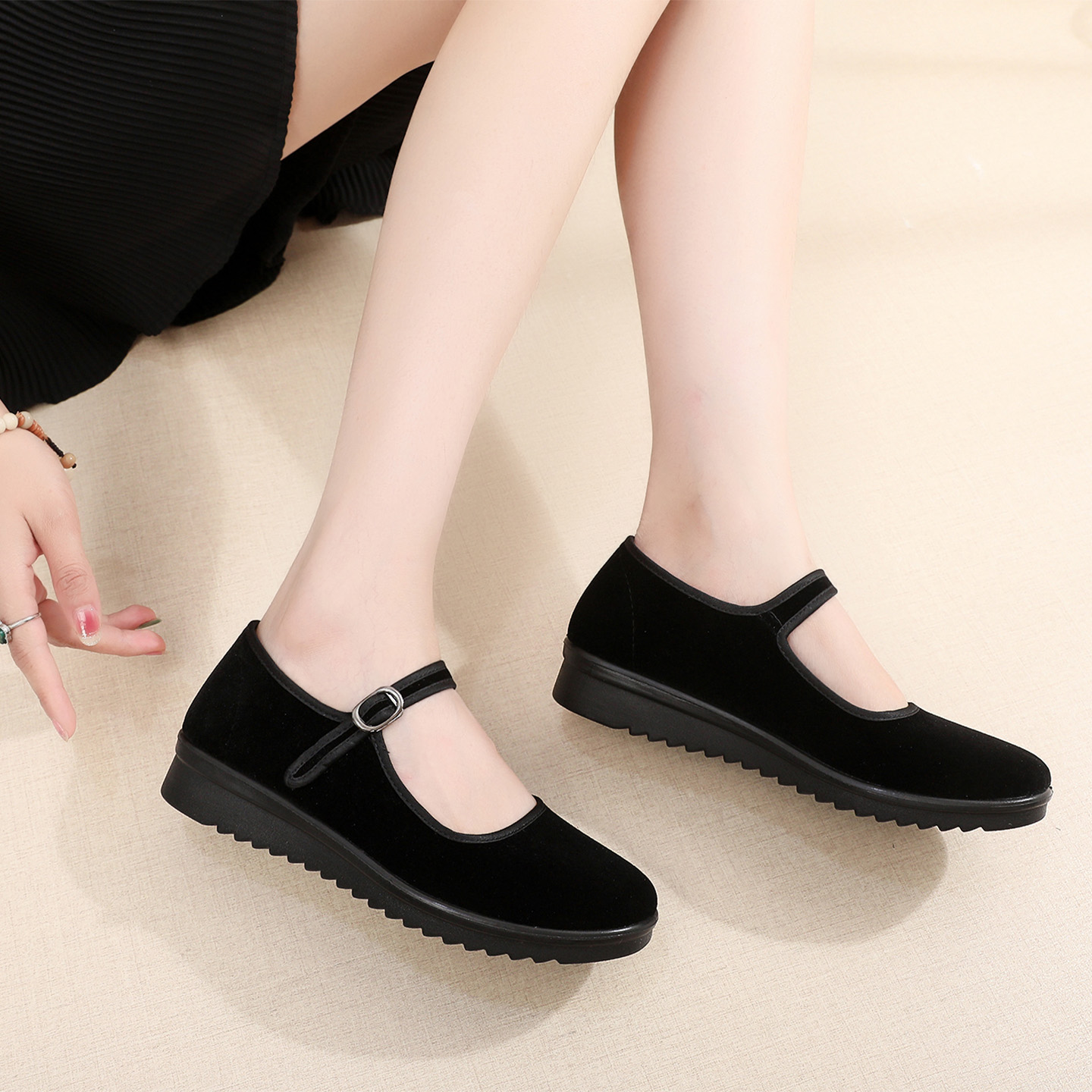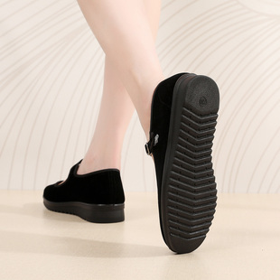 平底上班工作鞋 2025新款 老北京布鞋 女單鞋 子 黑色防滑軟底廣場舞鞋由