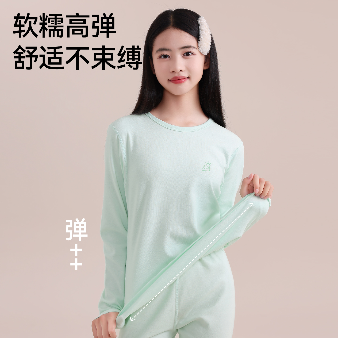 貓人青少年秋衣秋褲 2025新款 純棉少女保暖內衣女大童棉毛衫 女套裝由