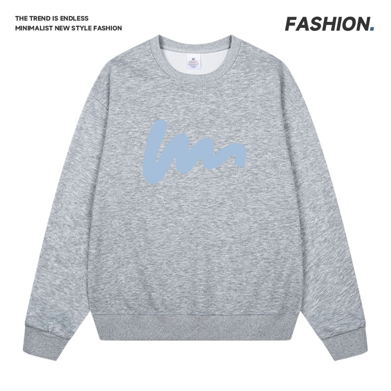 字母刺繡廓形韓系衛衣淺麻灰色長袖 上衣 新款 樂町半開襟衛衣女秋季