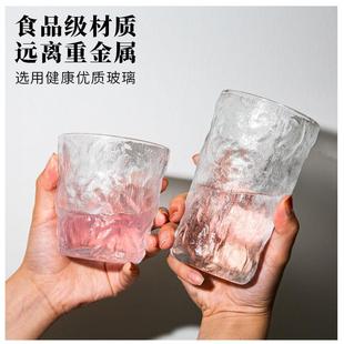 玻璃杯泡茶杯咖啡杯磨砂啤酒杯洋酒杯樹紋杯冰川紋杯子ins喝水杯