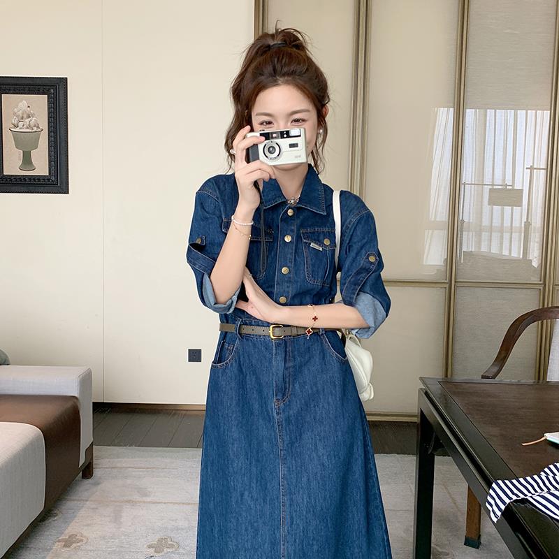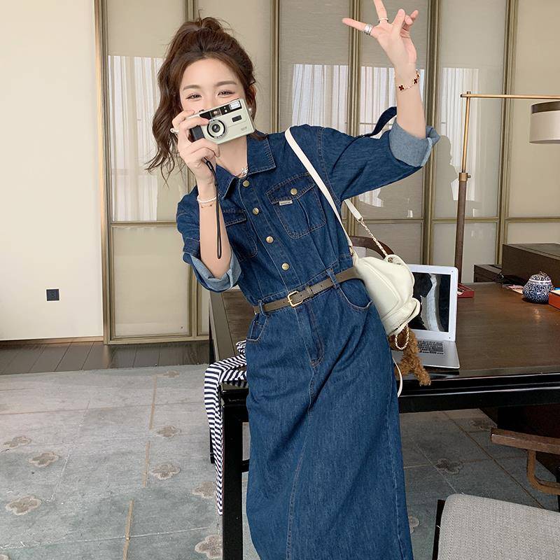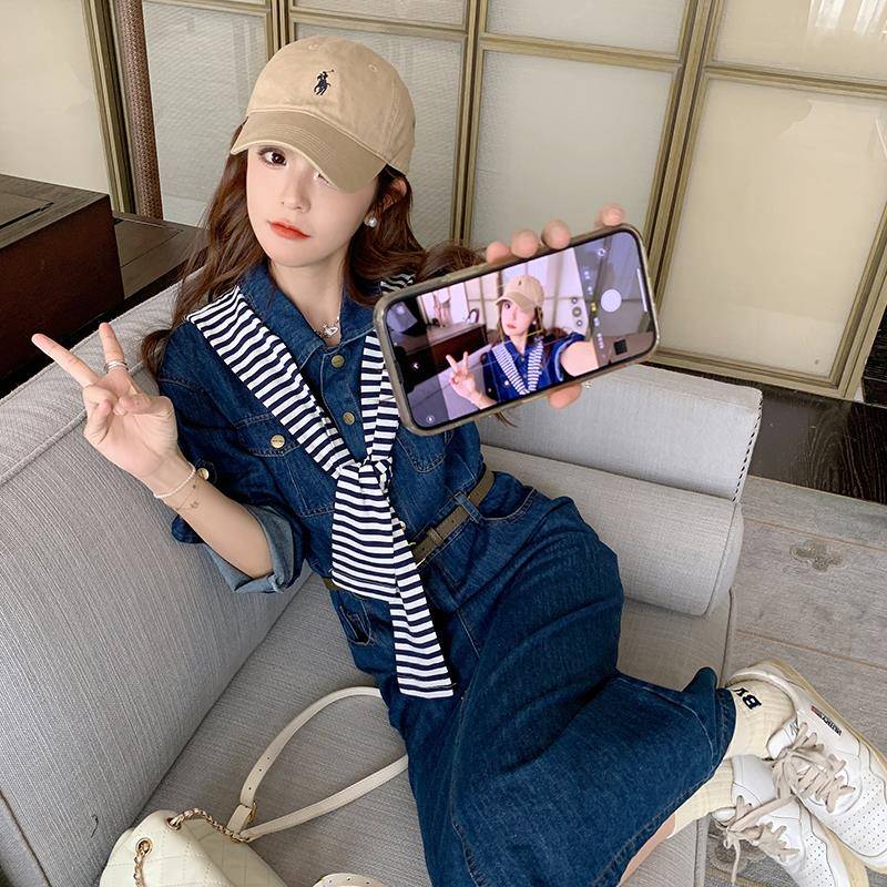 帶披肩襯衫 連身長(zhǎng)裙 2025年新款 超火穿搭高端牛仔連衣裙女春秋套裝由