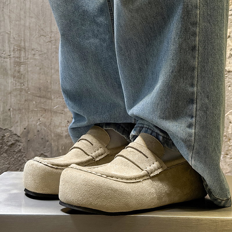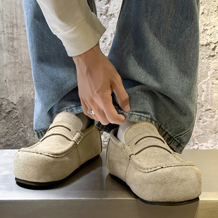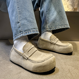 米新款 2025年秋防滑樂福鞋 豆豆鞋 女 真皮一腳蹬內(nèi)增高厚底勃肯鞋