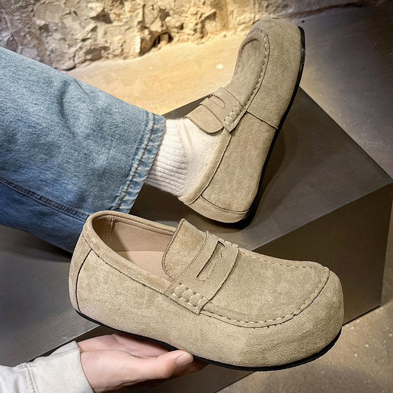 英倫豆豆鞋 百思圖25秋新款 絨面羊皮鞋 miu系樂福鞋 UXE01AA6 女單鞋