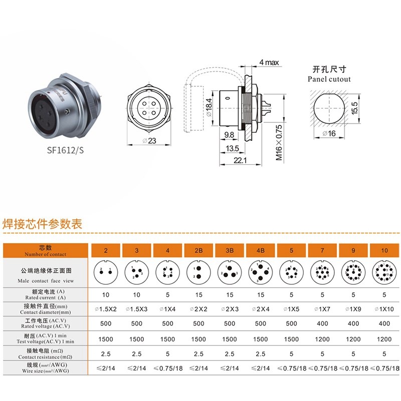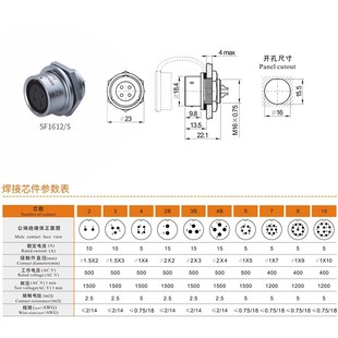 2芯3芯4針5P7芯9芯10芯防水工業連接器 威浦SF16航空插頭插座SF16由