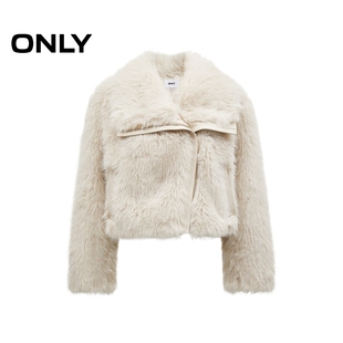 百搭千金風純色設計保暖翻領短款 環保皮草外套女 新款 ONLY2025秋季由