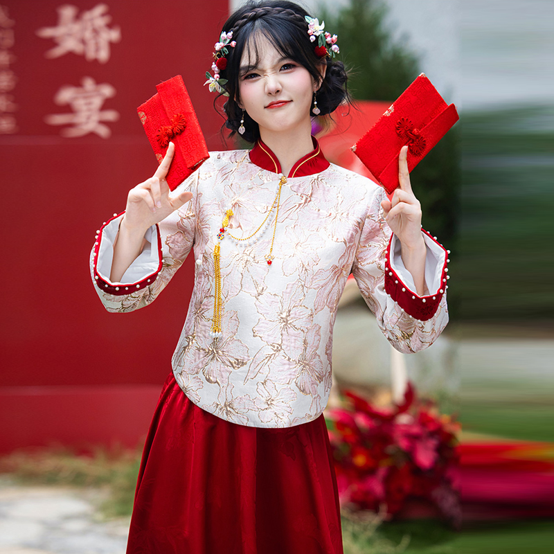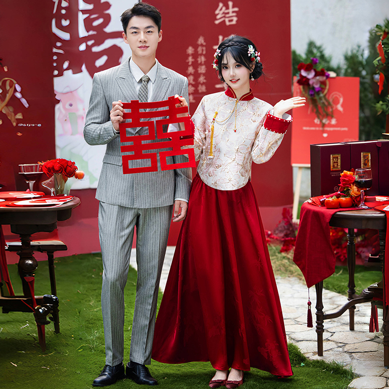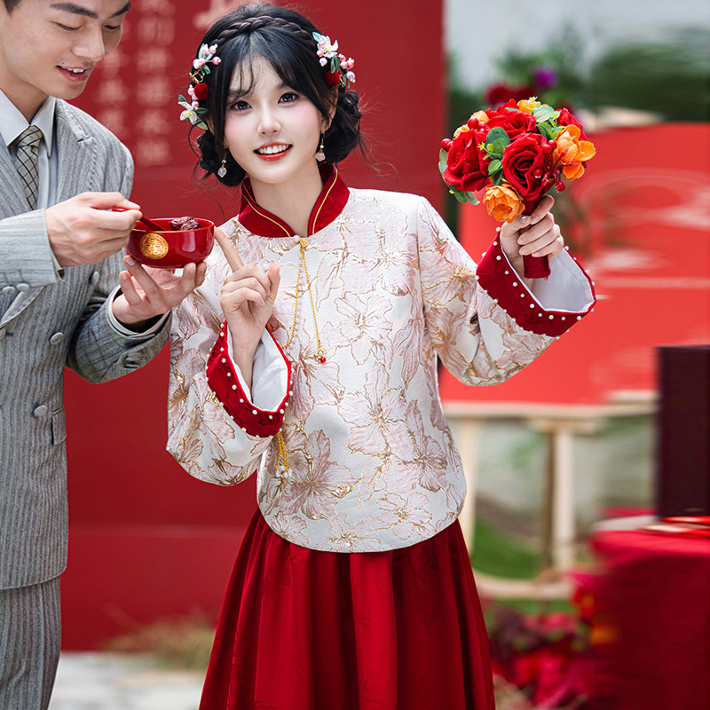 復古婚禮敬酒服裝 訂婚宴回門喜嫁婚禮服 國風訂婚服結婚套裝 新中式由