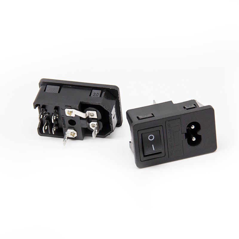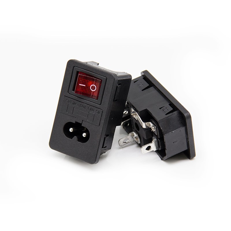 AC電源插座三合一8字插座插頭紅色帶燈黑色開關帶保險絲電源插座由