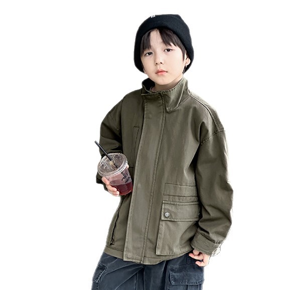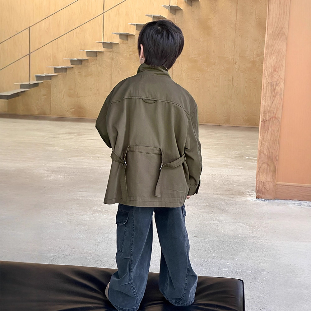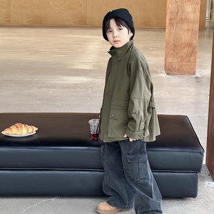 工裝 全棉中長款 艾摩貝貝2025秋潮童復古大口袋風衣男女童韓版由