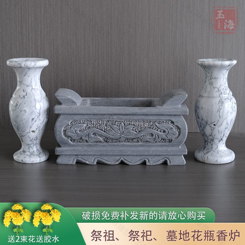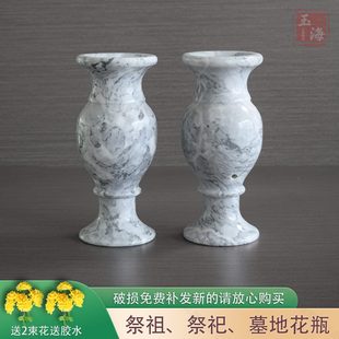 石花瓶一對天然漢白玉大理石材石頭青石燭臺插花祭祀墓地香爐獅子