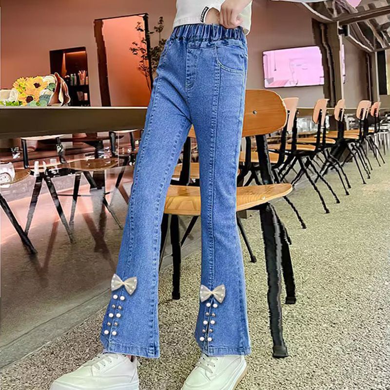 2025新款 春秋款 女童牛仔褲 褲 子女孩兒童喇叭褲 中大童休閑修身 童裝