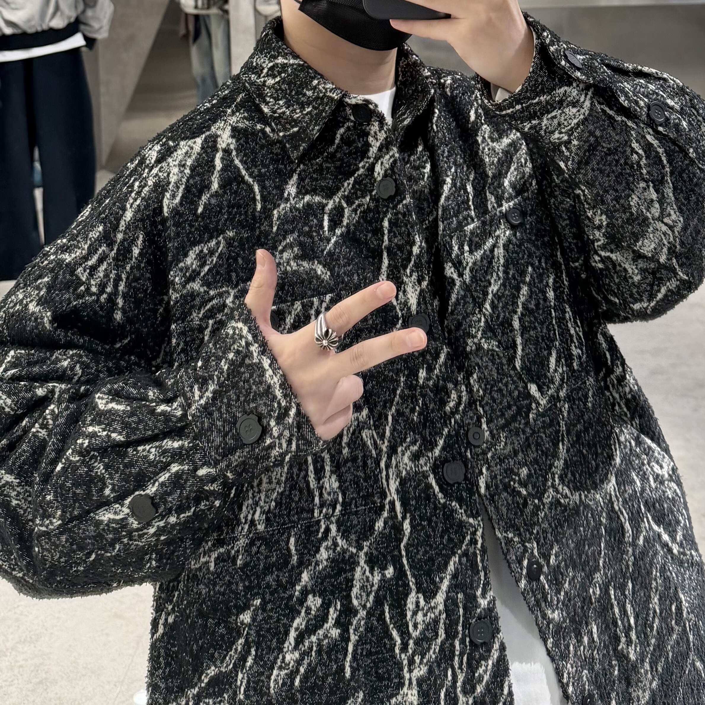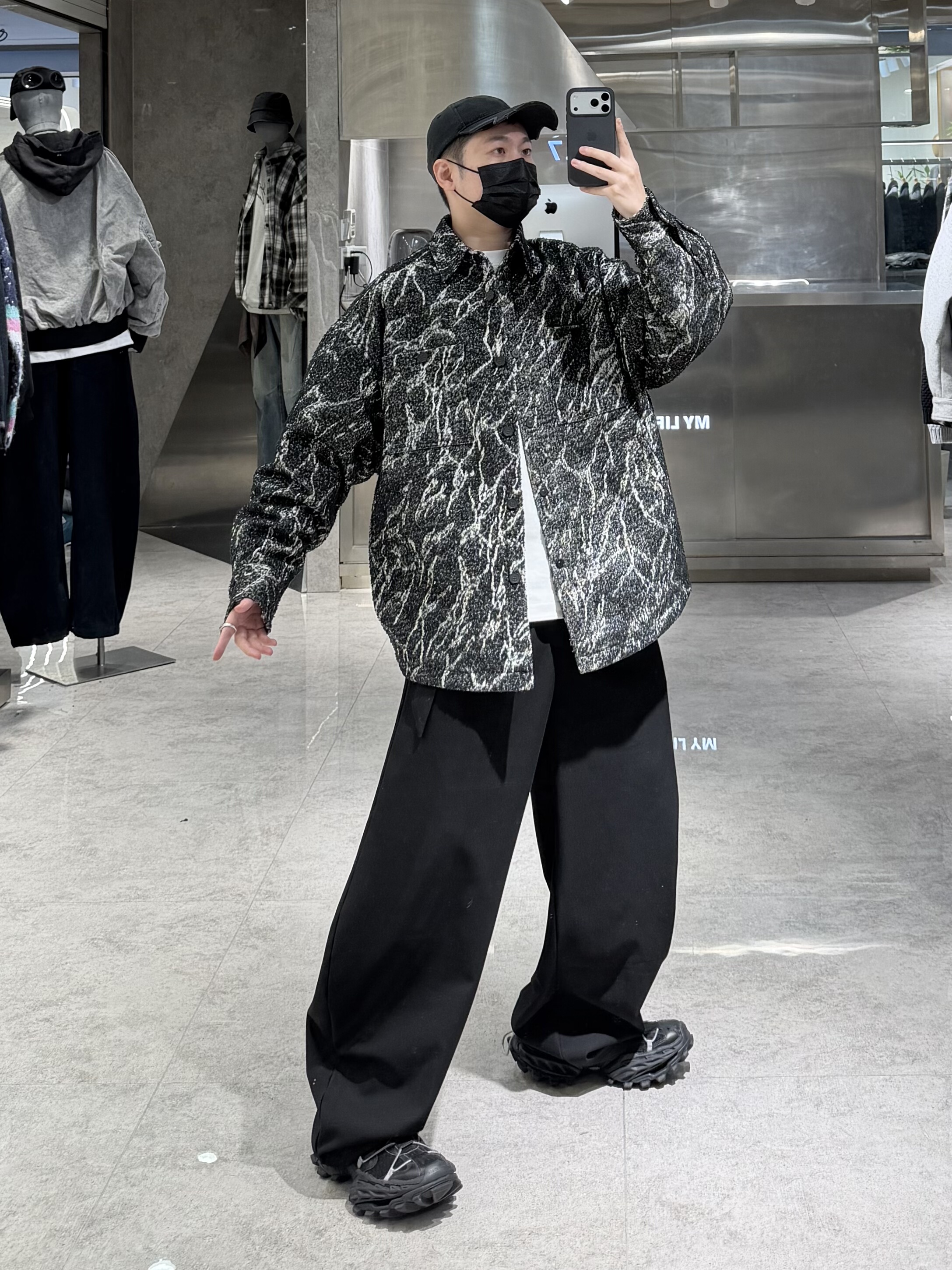 日言潮牌冬季 鵝絨服男復(fù)古小香風(fēng)寬松青年帥氣90白鵝絨外套 襯衣款由