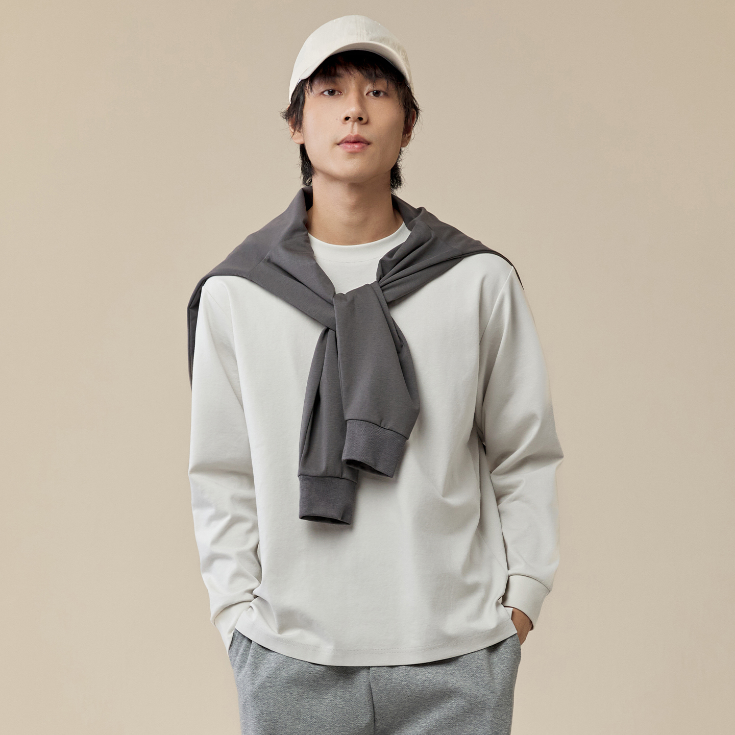 純色寬松百搭上衣打底衫 KS202 T恤男25春秋新款 NNID雙面羅馬布長袖由