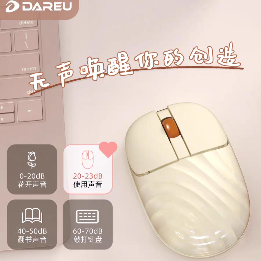 達爾優LM135水波紋女生辦公鼠標藍牙無線2.4G靜音電腦筆記本通用由