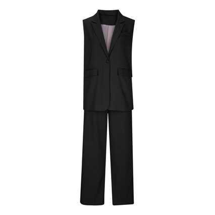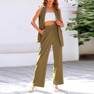 suit leg straight set時(shí)尚 long 無(wú)袖 pants 直筒長(zhǎng)褲 女 套裝 小西裝由