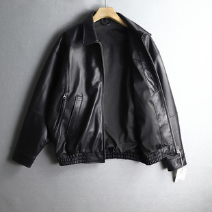翻領男士 高端皮衣夾克外套 歐美B家原貨復古柔軟羊皮寬松版 優(yōu)外匯由