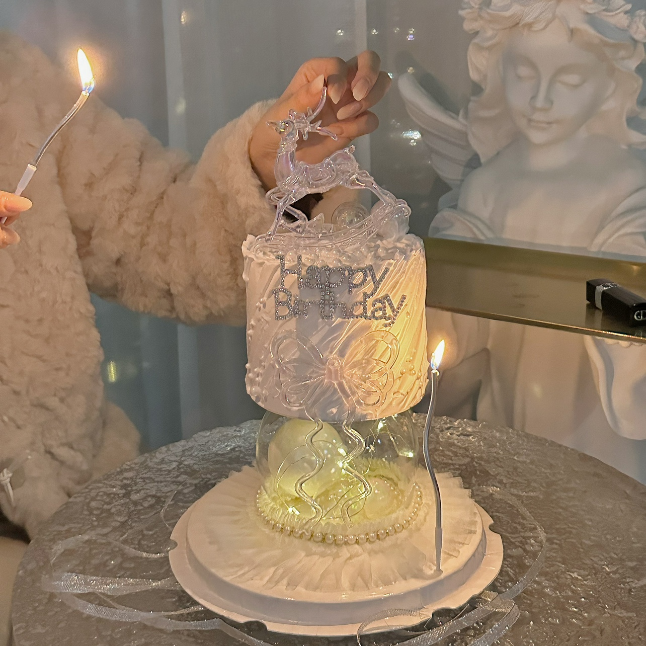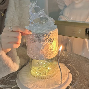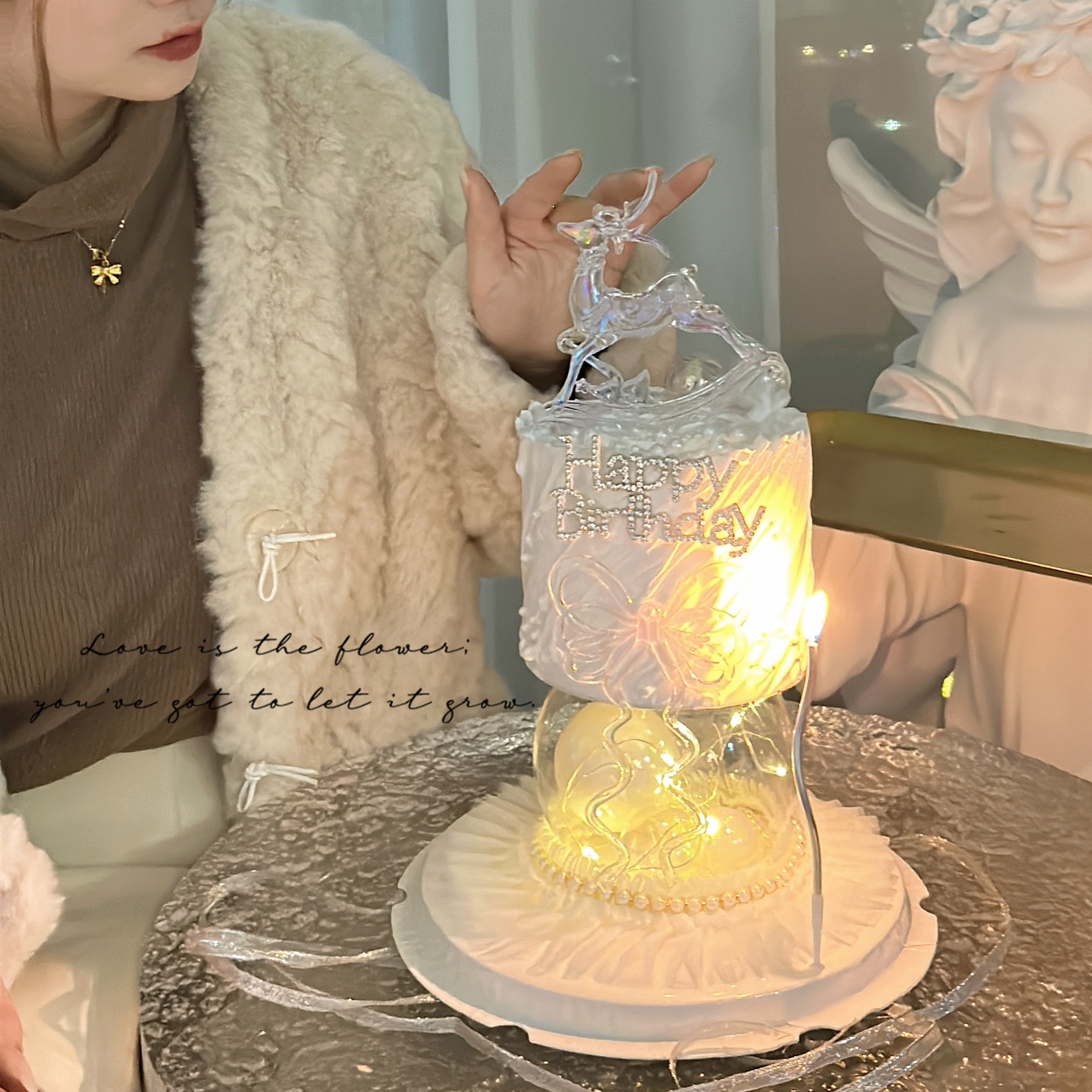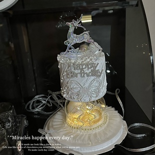 抱抱醬懸浮麋鹿水晶球蛋糕裝 扮插件 飾擺件蝴蝶結鉆石仙女生日裝由