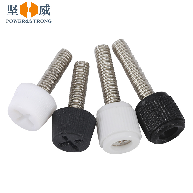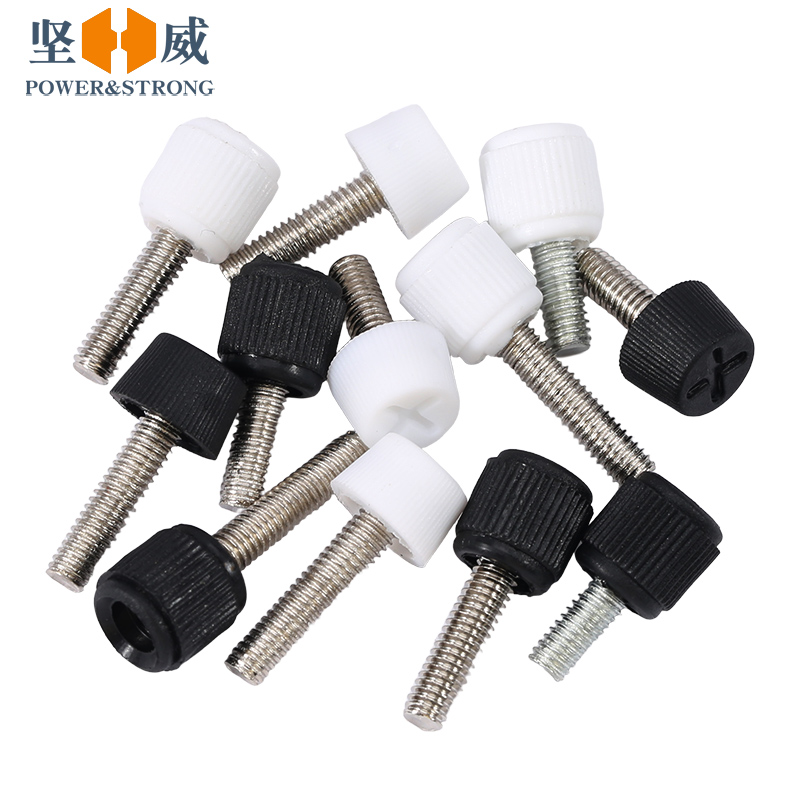 304不銹鋼滾花膠頭手擰塑膠頭手柄公制手扭電腦機箱螺絲釘M3M4由