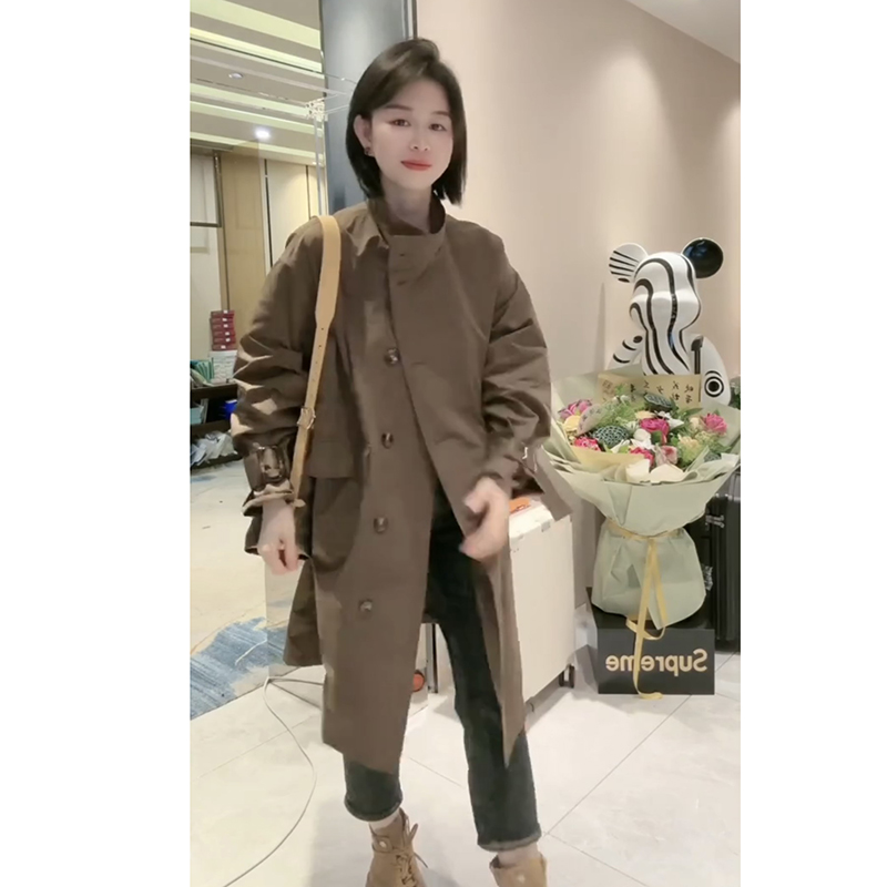 風(fēng)衣外套設(shè)計感寬松慵懶風(fēng)小個子上衣 復(fù)古通勤風(fēng)卡其色中長款