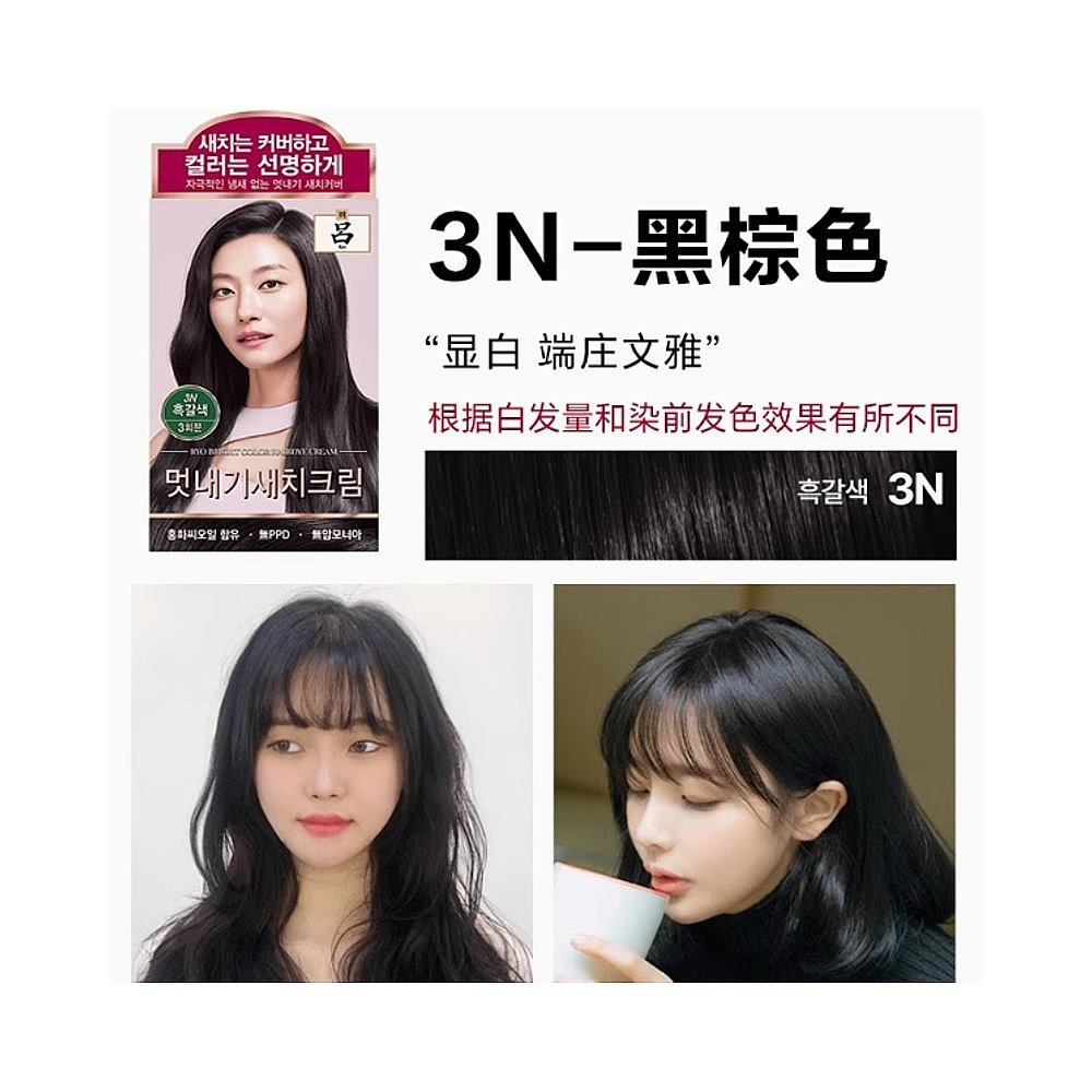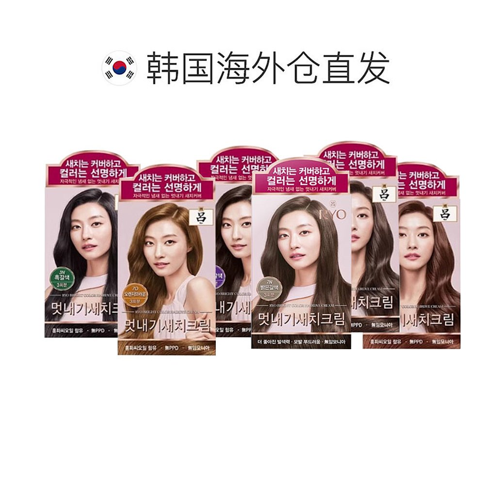 韓國直郵OLIVE 2黑色自然棕深棕色 YOUNG專享RYO呂植物染發劑120g由