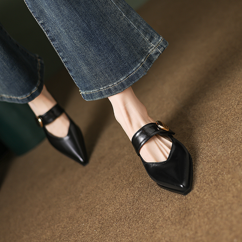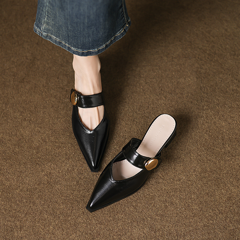 粗跟包頭半拖穆勒鞋 尖頭拖鞋 淺口涼單鞋 法式 女外穿2025新款 夏季由