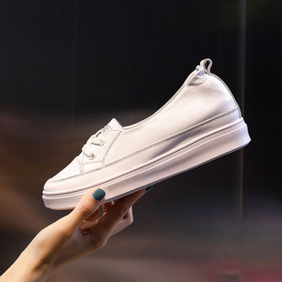 透氣女鞋 內增高小白鞋 女真皮春季 薄款 女 顯腳小休閑淺口一腳蹬板鞋由