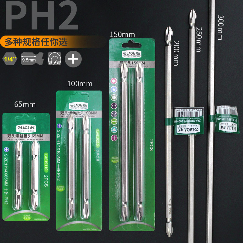 S2批頭合金鋼電動起子頭PH2螺絲刀頭加長雙頭十字風批頭批咀 老A由