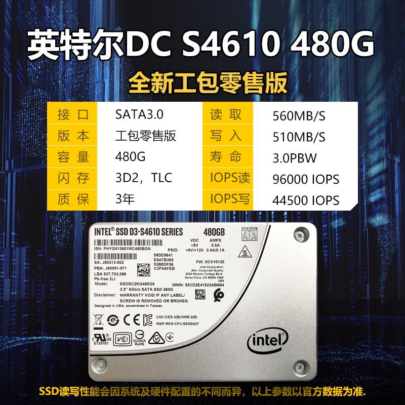 英特爾固態(tài)硬盤S4510 960G SATA3企業(yè)級(jí)服務(wù)器硬盤S4610 ssd 480G由