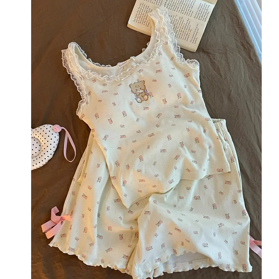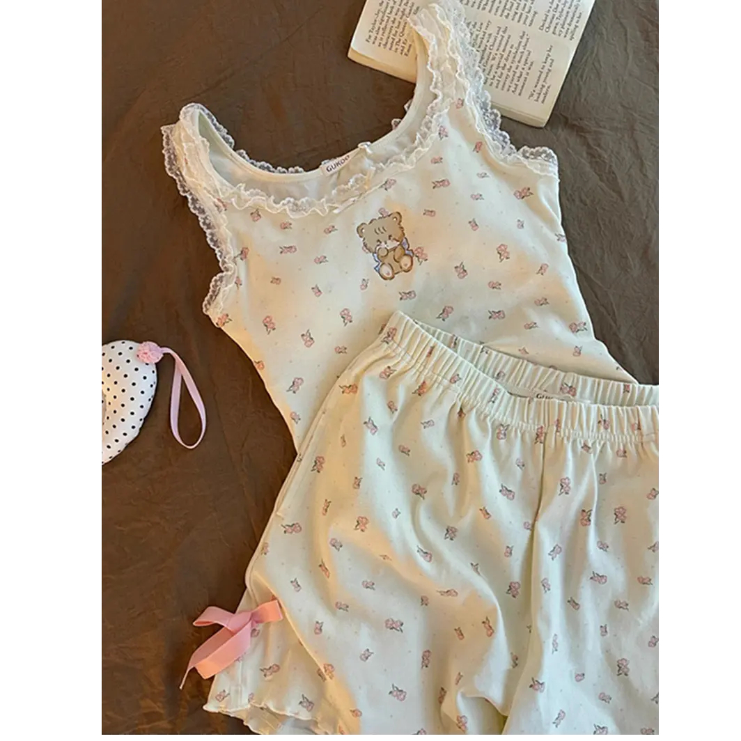月光 睡衣女卡通可愛小熊乖乖無袖 套裝 甜美少女家居服兩件套 夏季由