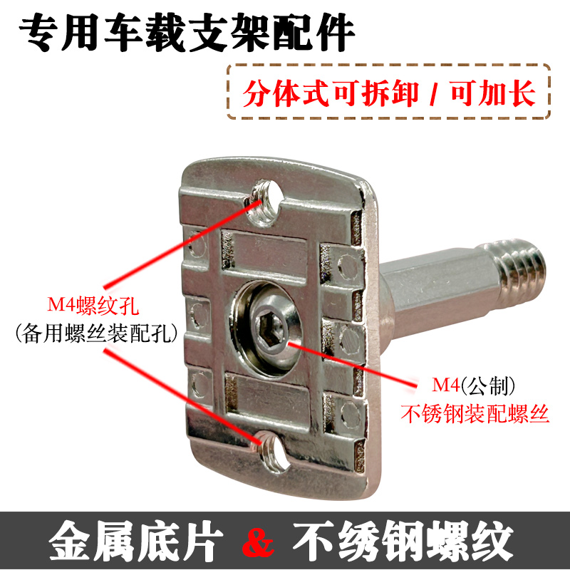 不繡鋼M6公制螺紋1 配件 4英制螺紋車載手機(jī)支架金屬底金屬桿改裝由