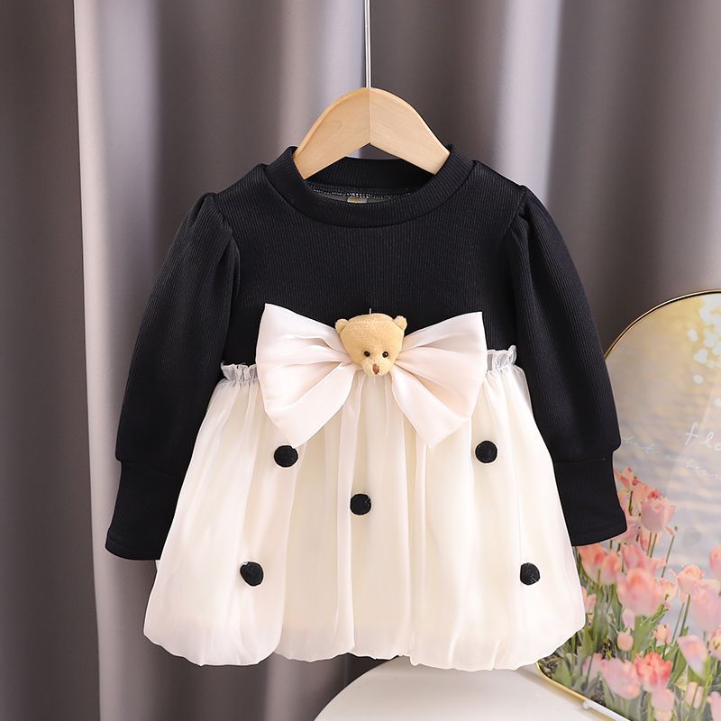 dfvc假兩件絲絨連衣裙女2025年秋季 釘珠拼接寬松小黑裙公主裙 新款