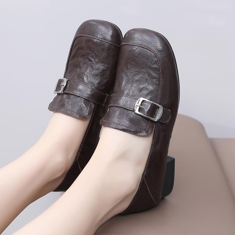 女低跟媽媽鞋 0707d 百搭休閑樂福鞋 舒適中老年一腳蹬軟底單鞋由