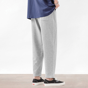 子灰色運(yùn)動(dòng)休閑褲 九分褲 寬松秋季 薄款 潮牌針織小腳褲 夏季 男生衛(wèi)褲由