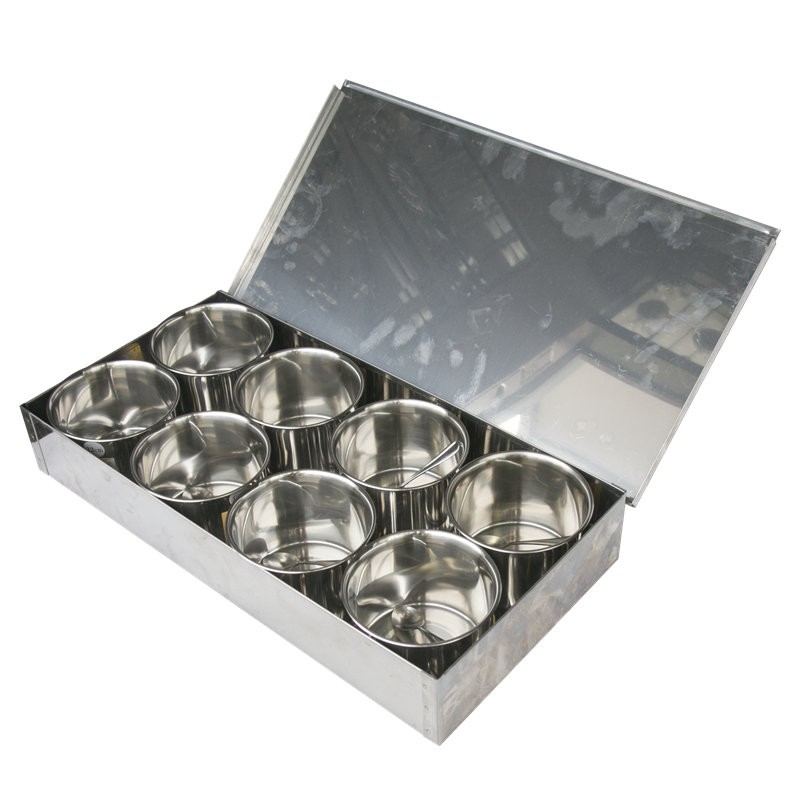 不銹鋼圓格加厚大號o調(diào)料盒4格6味8味盒帶蓋留樣盒方盒調(diào)料罐由