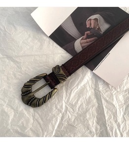 美式 散裝 素質(zhì)SZ 復(fù)古細(xì)腰帶棕色花紋皮帶小眾設(shè)計(jì)感Y2K辣妹風(fēng)由