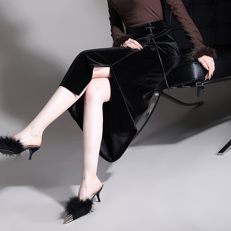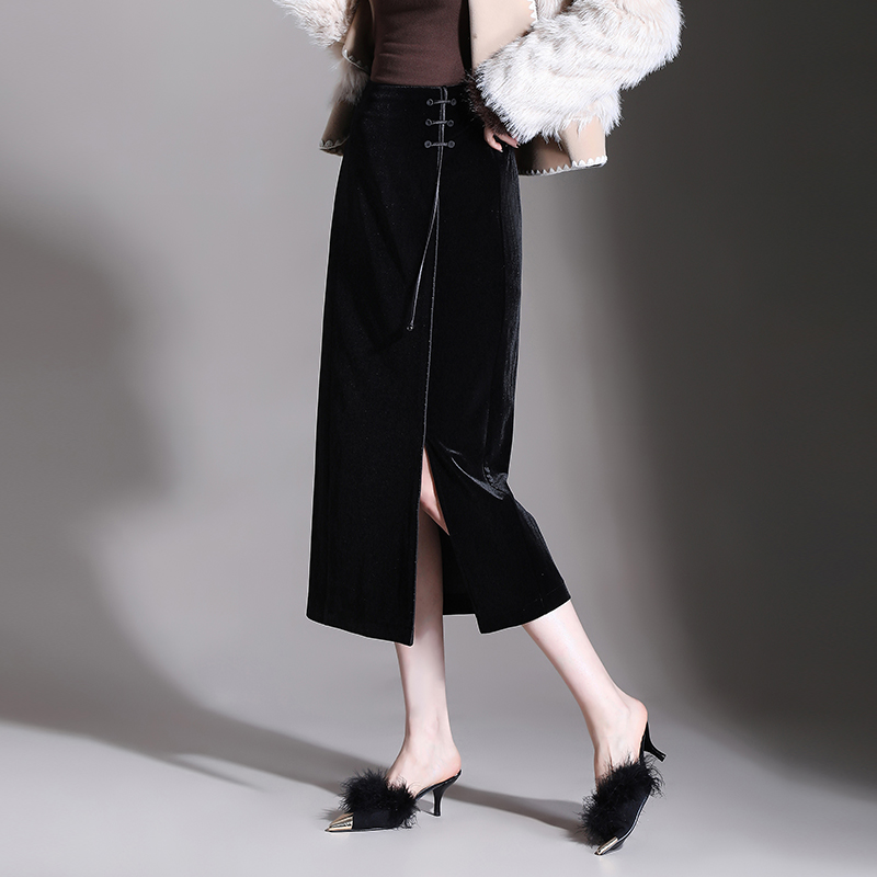 高腰一步裙中長款 休閑裙子 金絲絨直筒裙半身裙秋冬新款 新中式由