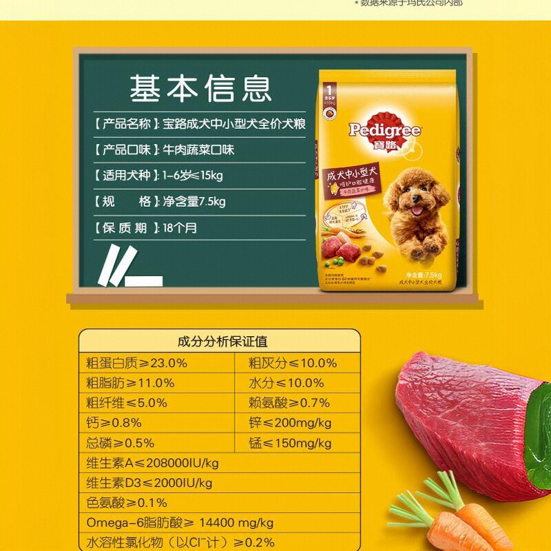 寶路成犬狗糧7.5kg中小型犬通用全價金毛泰迪牛肉雞肉味犬糧15斤由