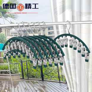 德國曬襪子神器家用掛衣多夾子晾衣架不銹鋼無痕防風陽臺晾曬由
