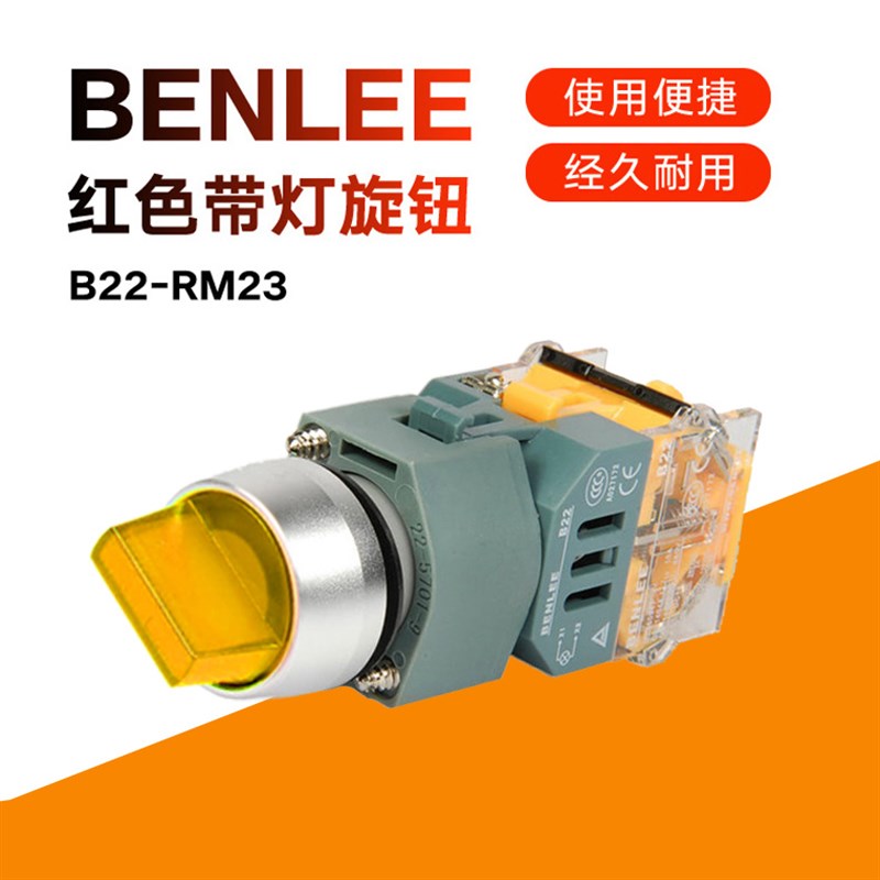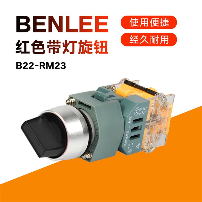 RM23按鈕開關 BENLEE廣州本立開關兩位紅色帶燈旋鈕B22由