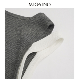 Migaino曼婭奴女裝 新款 修身 顯瘦拼接針織裙裙MO32DW204 秋季由
