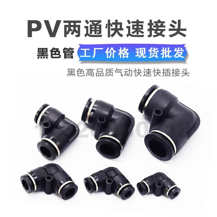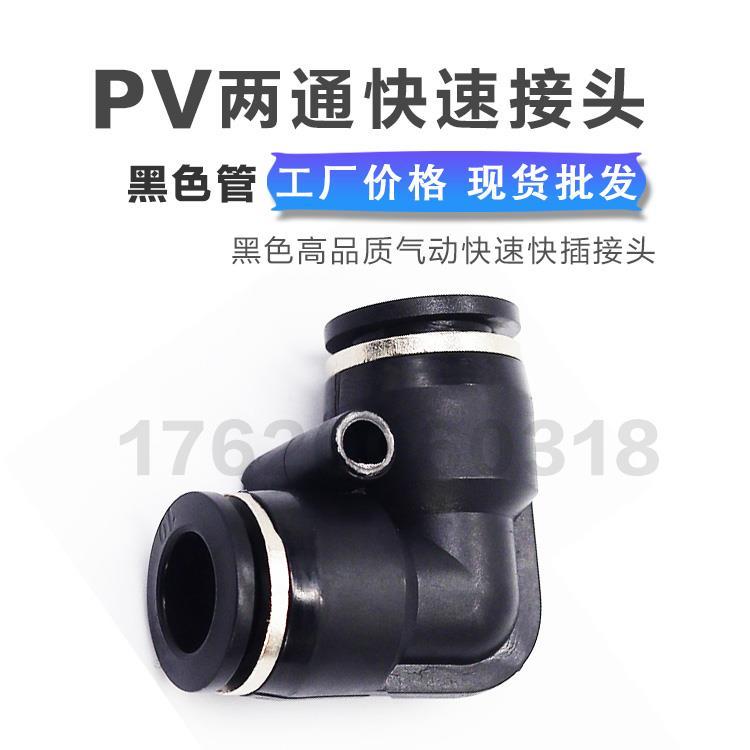 氣動黑色塑料 L型直角彎頭兩通等徑快插快速氣管接頭PV由