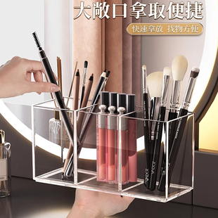 亞克力筆筒收納盒高顏值ins大容量小學(xué)生書桌文具置物架桌面多功能透明4格加厚筆桶高級感辦公桌整理化妝刷由